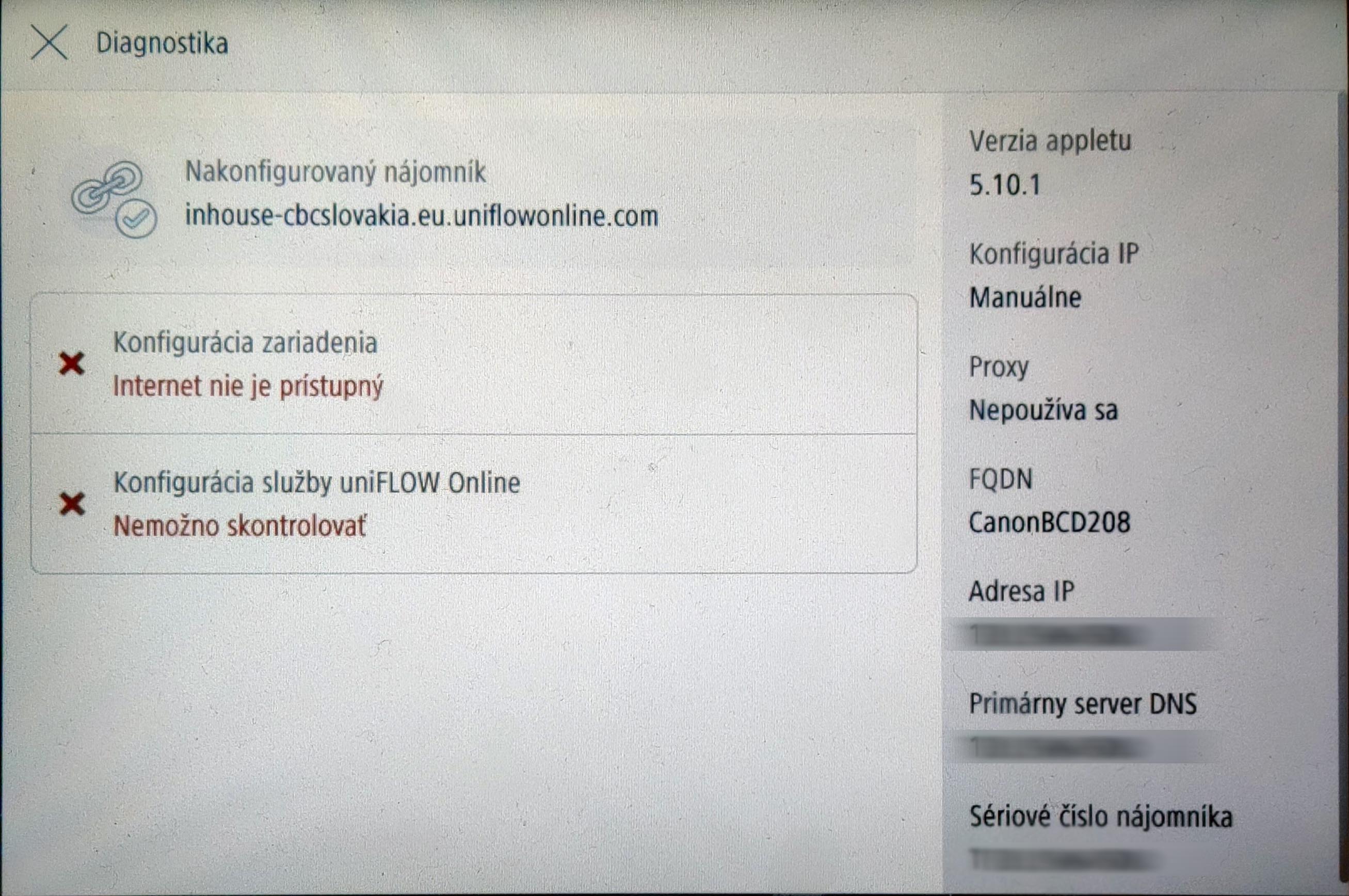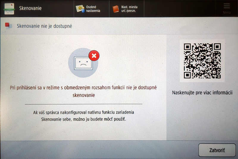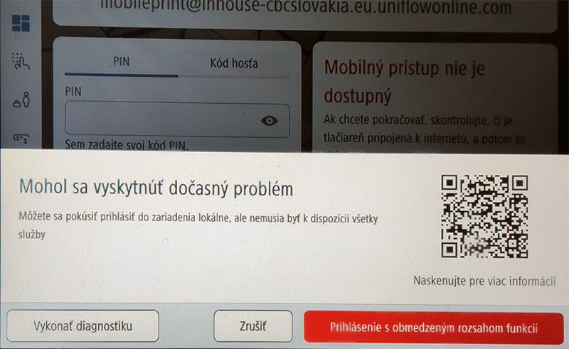 Skenovanie pomocou uniFLOW Online pri výpadku je nefunkčné (hláška)